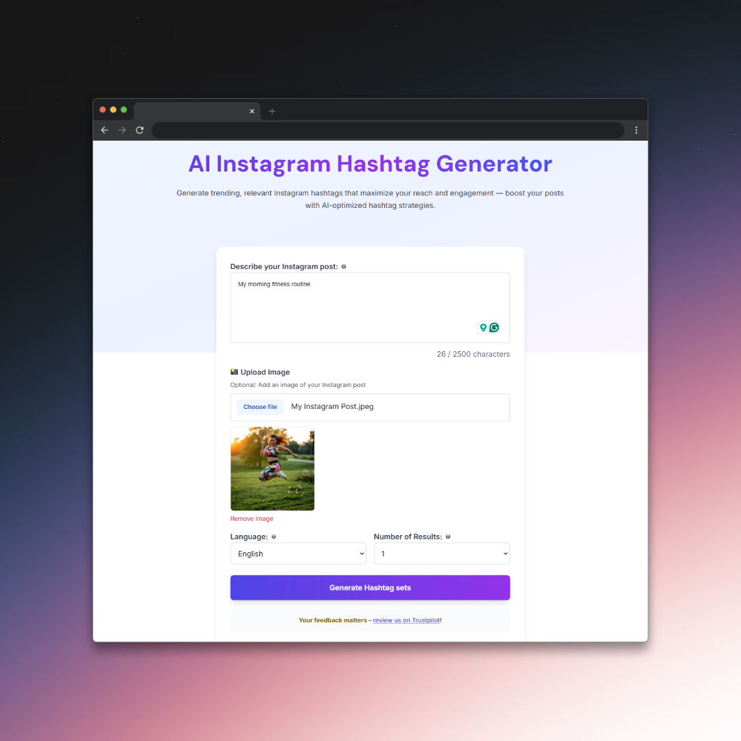 So go on and give our AI Instagram Hashtag Generator a try. You focus on flexing, let the AI handle the hashtags.